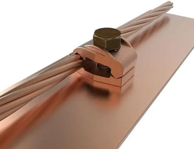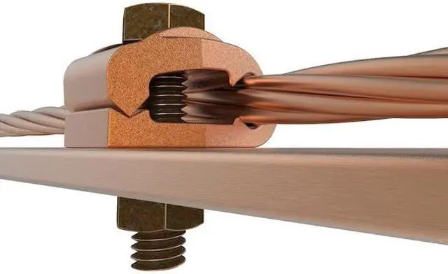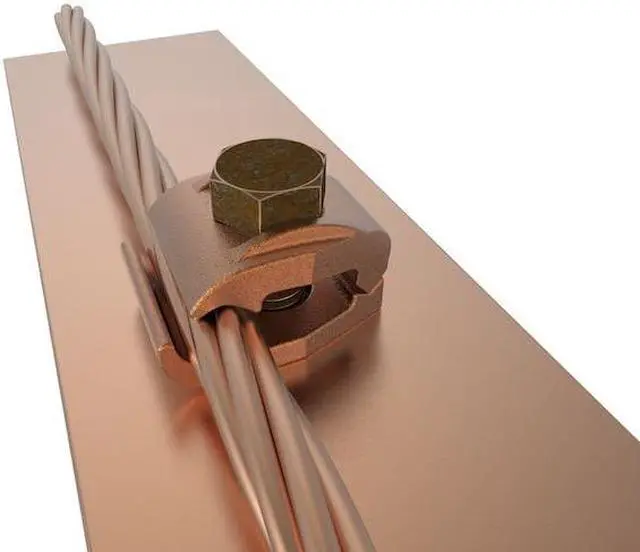 Grounding Connector, Grounding Wire Size 2/0 AWG to 250 kcmil SOL, 2/0 AWG to 250 kcmil STR, Material Copper, Number of Wires - Grounding 1, Description/Special Features Direct Burial, Separates Two Cables From Bar, For Maximum Ground Conductor Wire Size 250 kcmil, For Minimum Ground Conductor Wire Size 2/0 AWG SOL, For Use With Copper Conductors, Flat Bar, Grounding Wires Connected To 1/4 in Bar, Standards UL Listed Direct Burial, UL467, Type - Grounding Connector Mechanical. This item has been restricted from sale in the following state (s): []