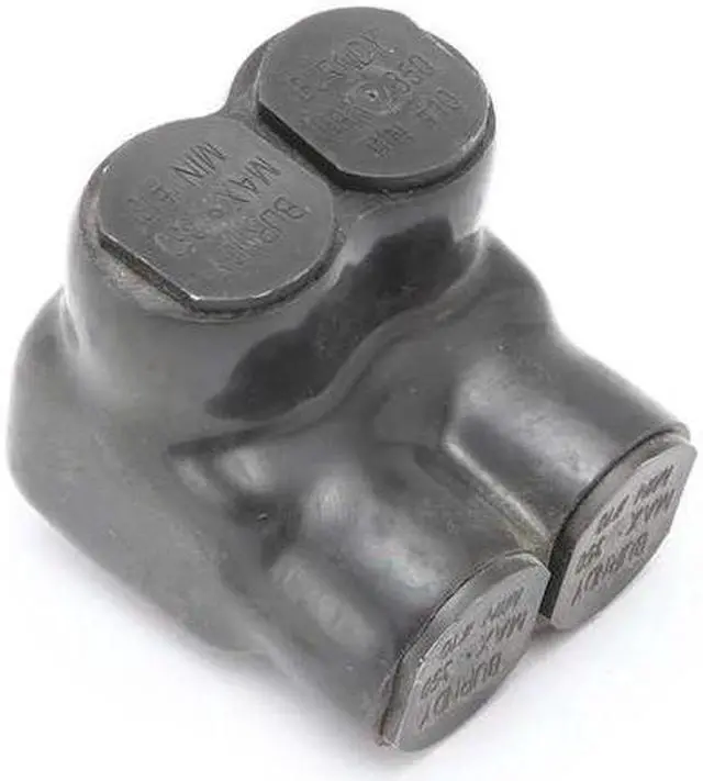 Multitap Connector, Body Material Aluminum, Color Black, Finish Unplated, For Conductor Material Aluminum, Copper, For Stranded Copper Wire Size - Minimum 10 AWG, For Stranded Copper Wire Size - Maximum 350 kcmil, Head Style Hex, Hex Size 5/16 in, Insulation Material Plastisol, Maximum Temperature 194 Degrees F, Maximum Voltage 600 V, Mounting Hole Size Not Applicable, Number of Ports 2, UL 94 Flammability Rating V-0, RoHS Compliant Yes, Standards UL Listed. This item has been restricted from sale in the following state (s): []