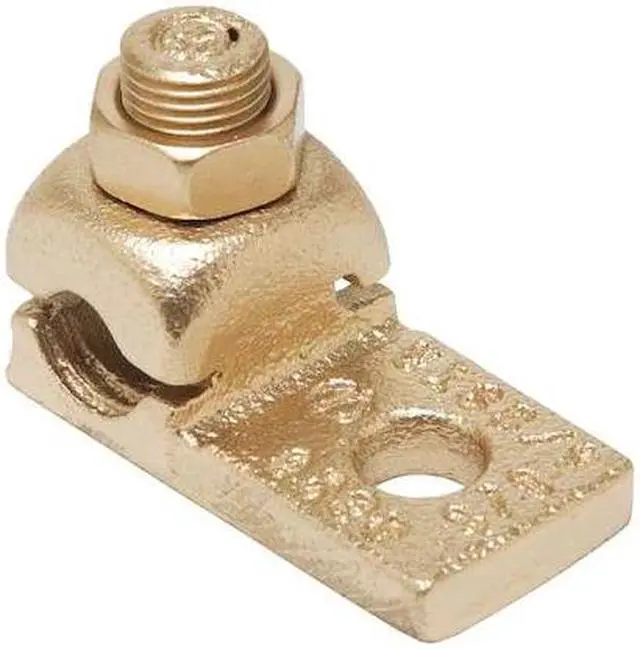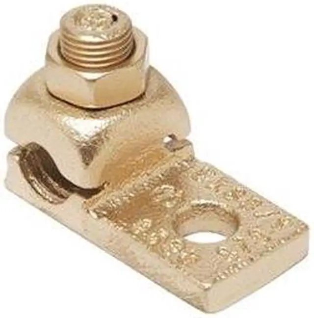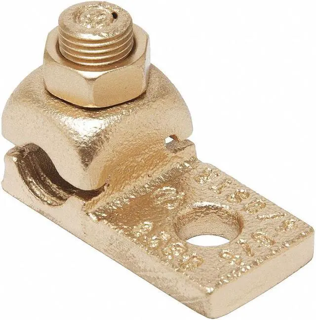 Mechanical Connector, For Conductor Material Copper, For Stranded Copper Wire Size - Minimum 3/0 AWG, For Stranded Copper Wire Size - Maximum 4/0 AWG, For Stud Size 3/8 in, Head Style Hex Head, Number of Holes 1, Hole Diameter 0.41 in, Hole Spacing Not Applicable, Body Material Copper, Maximum Temperature 194 Degrees F, Maximum Voltage 600 V, Number of Conductors 1, Number of Terminations 1, Tongue Length 1.06 in, Tongue Width 1 in, Tongue Thickness 0.25 in, Connector Type Terminal. This item has been restricted from sale in the following state (s): []