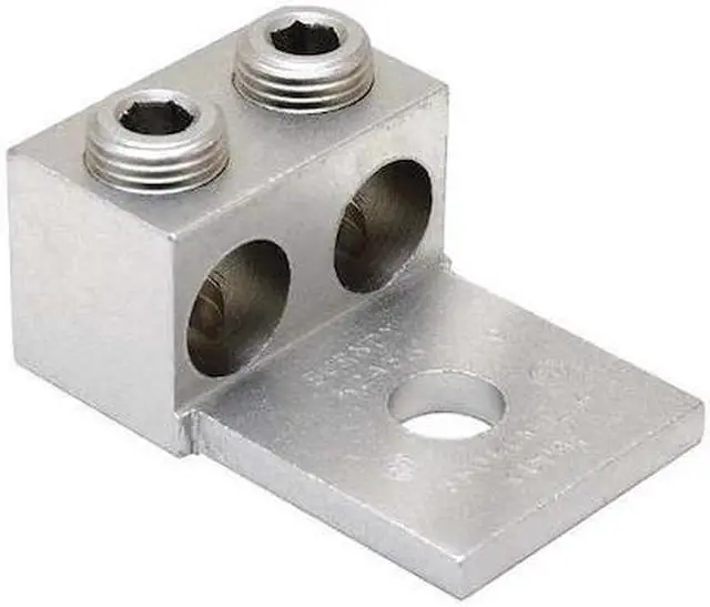 Mechanical Connector, For Conductor Material Aluminum, Copper, For Stranded Copper Wire Size - Minimum 2 AWG, For Stranded Copper Wire Size - Maximum 600 kcmil, For Stud Size 1/2 in, Head Style Slotted, Number of Holes 1, Hole Diameter 0.53 in, Hole Spacing Not Applicable, Body Material Aluminum, Maximum Temperature 194 Degrees F, Maximum Voltage 600 V, Number of Conductors 2, Number of Terminations 2, Tongue Length 1.75 in, Tongue Width 2.42 in, Tongue Thickness 0.44 in, Connector Type Lug. This item has been restricted from sale in the following state (s): []