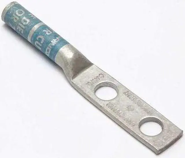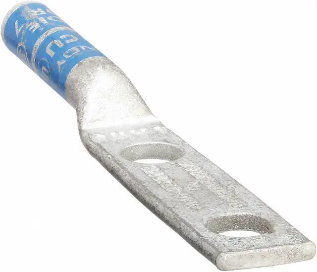 Two-Hole Lug Compression Connector, Barrel Size Long, Color Code Blue, Die Code 374, 7, Tongue Angle Straight, Tongue Width 0.45 in, For Conductor Material Copper, For Stud Size 1/4 in, For Stranded Copper Wire Size - Minimum 6 AWG, For Stranded Copper Wire Size - Maximum 6 AWG, Inspection Hole No, Hole Center to Center 0.75 in, Material Copper, Maximum Operating Temperature 194 Degrees F, Maximum Voltage 35 kV AC, Termination Style Crimp, Standards CSA Certified, UL 486A-486B, UL Listed