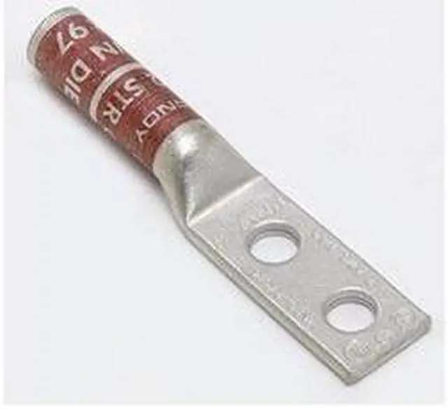 Compression Lug, Barrel Size Long, Color Code Brown, Die Code 10, Tongue Angle Straight, Tongue Width 0.6 in, For Conductor Material Copper, For Stud Size 1/4 in, For Stranded Copper Wire Size - Minimum 2 AWG, For Stranded Copper Wire Size - Maximum 2 AWG, Inspection Hole No, Hole Center to Center 0.625 in, Material Copper, Maximum Temperature 194 Degrees F, Maximum Voltage 35 kV, Termination Style Crimp, Standards CSA Certified, UL 486A-486B, UL Listed, Number of Holes 2, RoHS Compliant Yes.