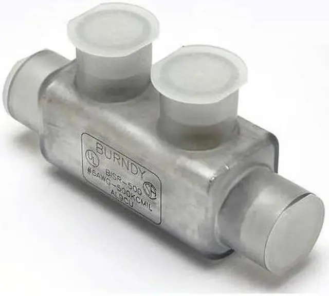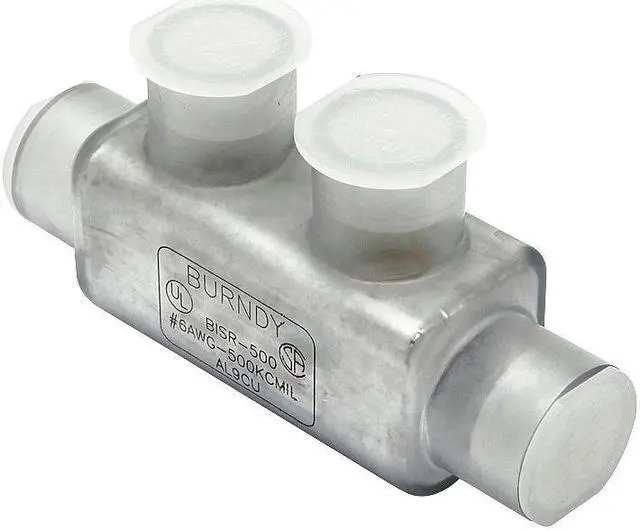 Insulated Multitap Connector, Body Material Aluminum, Color Clear, Finish Unplated, For Conductor Material Aluminum, Copper, For Stranded Copper Wire Size - Minimum 6 AWG, For Stranded Copper Wire Size - Maximum 500 kcmil, Head Style Hex, Hex Size 1/2 in, Insulation Material Plastisol, Maximum Operating Temperature 194 Degrees F, Maximum Voltage 600 V, Mounting Hole Size Not Applicable, Number of Ports 2, RoHS Compliant Yes, Standards CSA Approved, UL 486A, UL 486B, UL Listed. This item has been restricted from sale in the following state (s): []