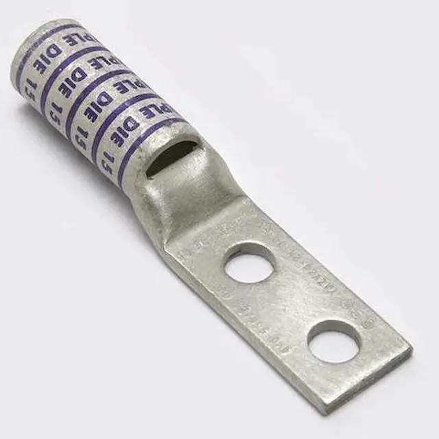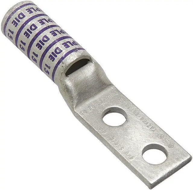 Compression Lug, Barrel Size Long, Color Code Purple, Die Code 15, Tongue Angle Straight, Tongue Width 0.94 in, For Conductor Material Copper, For Stud Size 3/8 in, For Stranded Copper Wire Size - Minimum 4/0 AWG, For Stranded Copper Wire Size - Maximum 4/0 AWG, Inspection Hole Yes, Hole Center to Center 1 in, Material Copper, Maximum Operating Temperature 194 Degrees F, Maximum Voltage 35 kV, Termination Style Crimp, Standards CSA Certified, UL 486A-486B, UL Listed, Number of Holes 2.