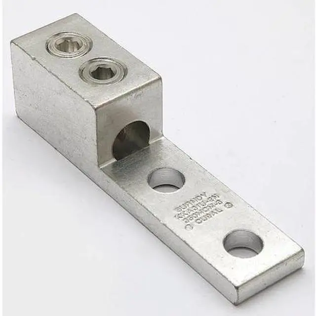 Mechanical Connector, For Conductor Material Aluminum, Copper, For Stranded Copper Wire Size - Minimum 6 AWG, For Stranded Copper Wire Size - Maximum 350 kcmil, For Stud Size 1/2 in, Head Style Hex Socket, Number of Holes 2, Hole Diameter 0.56 in, Hole Spacing 1.75 in, Body Material Aluminum, Maximum Temperature 194 Degrees F, Maximum Voltage 600 V, Number of Conductors 1, Number of Terminations 1, Tongue Length 3.16 in, Tongue Width 1.27 in, Tongue Thickness 0.38 in, Connector Type Lug.