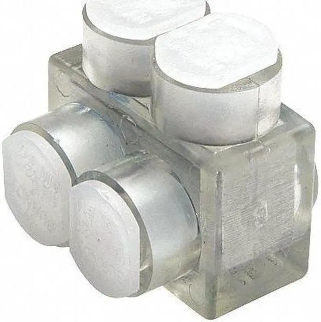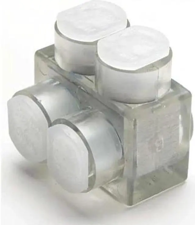 Multitap Connector, Body Material Aluminum, Color Clear, Finish Unplated, For Conductor Material Aluminum, Copper, For Stranded Copper Wire Size - Minimum 14 AWG, For Stranded Copper Wire Size - Maximum 2/0 AWG, Head Style Hex, Hex Size 3/16 in, Insulation Material Plastisol, Maximum Temperature 194 Degrees F, Maximum Voltage 600 V, Mounting Hole Size Not Applicable, Number of Ports 2, UL 94 Flammability Rating V-0, RoHS Compliant Yes, Standards CSA Approved, UL 486A, UL 486B, UL Listed. This item has been restricted from sale in the following state (s): []