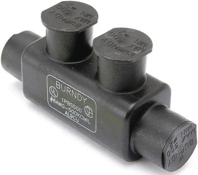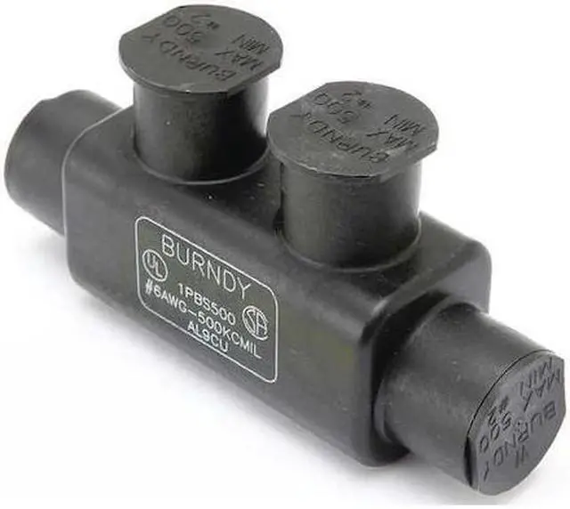 Multitap Connector, Body Material Aluminum, Color Black, Finish Unplated, For Conductor Material Aluminum, Copper, For Stranded Copper Wire Size - Minimum 6 AWG, For Stranded Copper Wire Size - Maximum 500 kcmil, Head Style Hex, Hex Size 1/2 in, Insulation Material Plastisol, Maximum Temperature 194 Degrees F, Maximum Voltage 600 V, Mounting Hole Size Not Applicable, Number of Ports 2, UL 94 Flammability Rating V-0, RoHS Compliant Yes, Standards UL Listed. This item has been restricted from sale in the following state (s): []