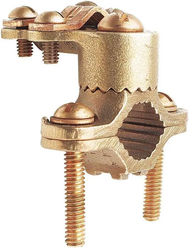 Grounding Connector, Grounding Wire Size 8 to 4/0 AWG STR, Material Bronze, Number of Wires - Grounding 1, Description/Special Features Direct Burial, EMT or Rigid Conduit, For Maximum Ground Conductor Wire Size 4/0 AWG, For Minimum Ground Conductor Wire Size 8 AWG, For Use With Copper Conductor, Ground Rod, Rebar, Water Pipe, Grounding Wires Connected To #4 to #6 Rebar, 1/2 in to 1 in Pipe, 3/8 in to 1 in Rod, Standards UL Listed Direct Burial, UL467, Type - Grounding Connector Mechanical.
