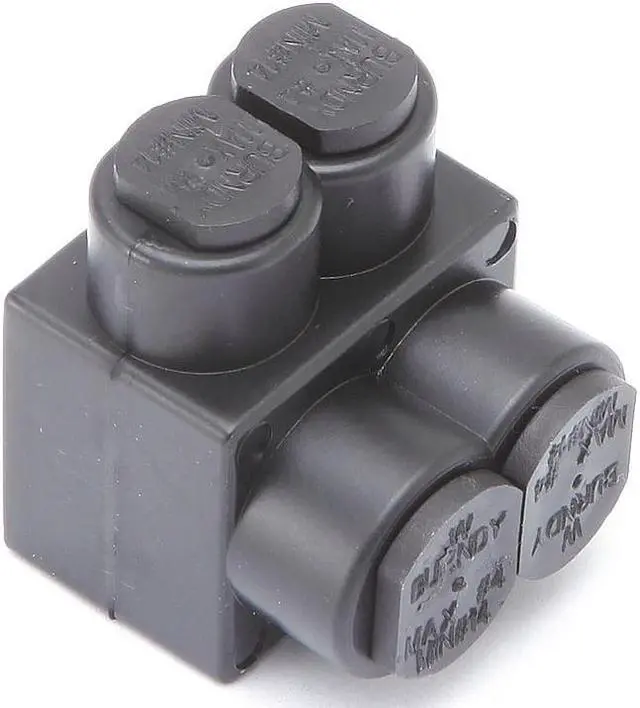 Multitap Connector, Body Material Aluminum, Color Black, Finish Unplated, For Conductor Material Aluminum, Copper, For Stranded Copper Wire Size - Minimum 14 AWG, For Stranded Copper Wire Size - Maximum 4 AWG, Head Style Hex, Hex Size 1/8 in, Insulation Material Plastisol, Maximum Temperature 194 Degrees F, Maximum Voltage 600 V, Mounting Hole Size Not Applicable, Number of Ports 2, UL 94 Flammability Rating V-0, RoHS Compliant Yes, Standards UL Listed. This item has been restricted from sale in the following state (s): []