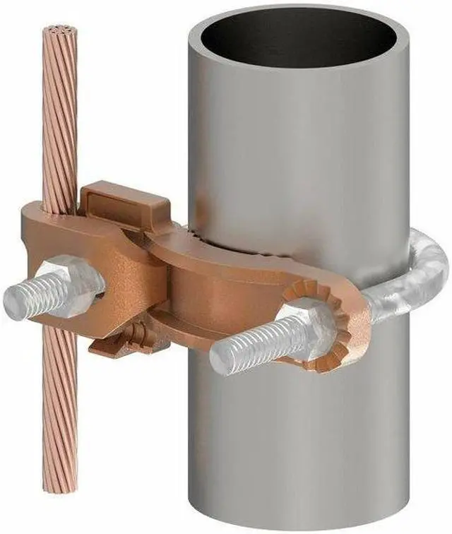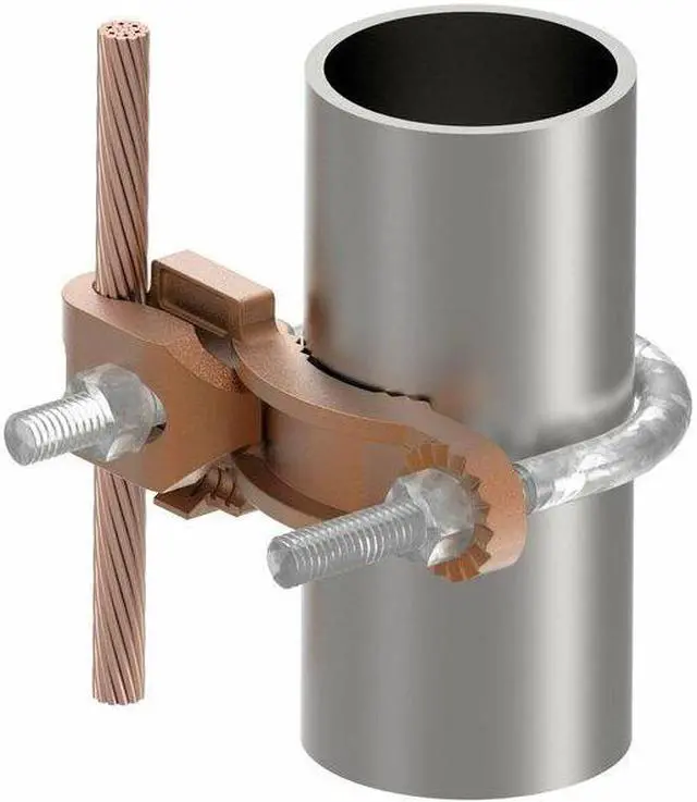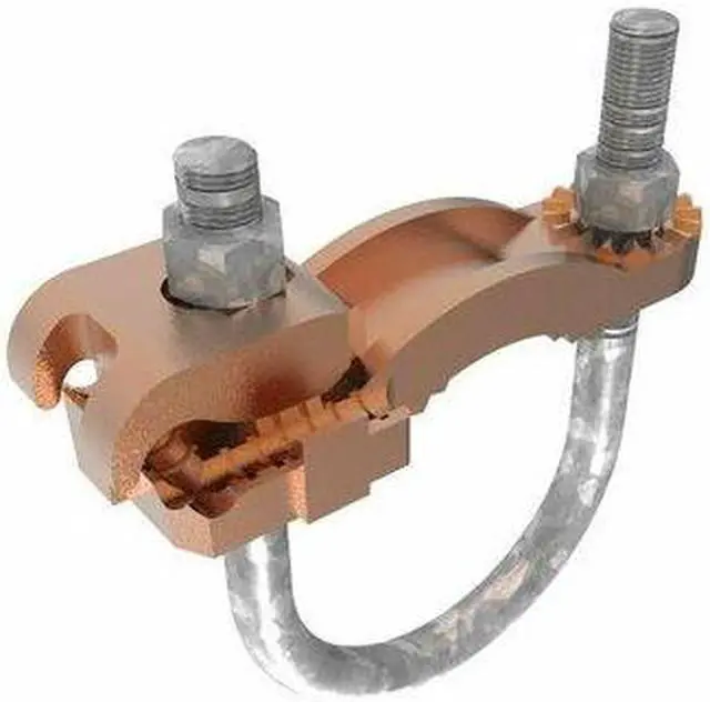 Grounding Connector, Grounding Wire Size 4 to 4/0 AWG SOL, 4 to 4/0 AWG STR, Material Copper, Number of Wires - Grounding 1, Description/Special Features Galvanized Steel Hardware, For Maximum Ground Conductor Wire Size 4/0 AWG, For Minimum Ground Conductor Wire Size 4 AWG, For Use With Copper Conductors, Pipe, Grounding Wires Connected To 2 1/2 in to 3 1/2 in Pipe, Standards UL Listed, UL467, Type - Grounding Connector Mechanical, Accessory Type Ground Clamp, For Maximum Pipe Size 3 1/2 in. This item has been restricted from sale in the following state (s): []