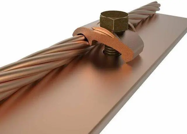 Grounding Connector, Grounding Wire Size 4 to 2/0 AWG SOL, 4 to 2/0 AWG STR, Material Copper, Number of Wires - Grounding 1, Description/Special Features Clamps One Cable Directly to Bar, Direct Burial, For Maximum Ground Conductor Wire Size 2/0 AWG STR, For Minimum Ground Conductor Wire Size 4 AWG SOL, For Use With Copper Conductors, Flat Bar, Grounding Wires Connected To 1/4 in Bar, Standards UL Listed Direct Burial, UL467, Type - Grounding Connector Mechanical. This item has been restricted from sale in the following state (s): []