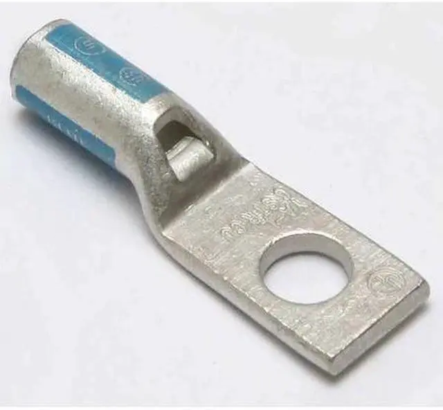 One-Hole Lug Compression Connector, Barrel Size Standard, Color Code Blue, Die Code 374, 7, Tongue Angle Straight, Tongue Width 0.63 in, For Conductor Material Copper, For Stud Size 3/8 in, For Stranded Copper Wire Size - Minimum 6 AWG, For Stranded Copper Wire Size - Maximum 6 AWG, Inspection Hole Yes, Hole Center to Center Not Applicable, Material Copper, Maximum Operating Temperature 194 Degrees F, Maximum Voltage 35 kV AC, Termination Style Crimp. This item has been restricted from sale in the following state (s): []