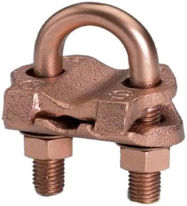 Grounding Connector, Grounding Wire Size 4 to 2/0 AWG SOL, 5 to 2/0 AWG STR, Material Copper, Number of Wires - Grounding 1, Description/Special Features Direct Burial, For Maximum Ground Conductor Wire Size 2/0 AWG STR, For Minimum Ground Conductor Wire Size 4 AWG SOL, For Use With Copper Conductors, Ground Rods, Pipes, Rebar, Grounding Wires Connected To #5 to #6 Rebar, 3/8 in Pipe, 5/8 in to 3/4 in Rod, Standards UL Listed Direct Burial, UL467, Type - Grounding Connector Mechanical.