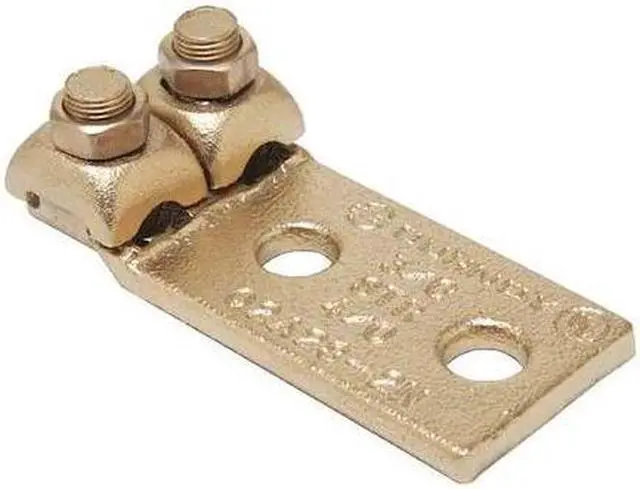 Mechanical Connector, For Conductor Material Copper, For Stranded Copper Wire Size - Minimum 250 kcmil, For Stranded Copper Wire Size - Maximum 350 kcmil, For Stud Size 1/2 in, Head Style Hex, Number of Holes 2, Hole Diameter 0.56 in, Hole Spacing 0.75 in, Body Material Copper, Maximum Operating Temperature 194 Degrees F, Maximum Voltage 600 V, Number of Conductors 2, Number of Terminations 2, Tongue Length 3.09 in, Tongue Width 2.38 in, Tongue Thickness 0.31 in, Connector Type Terminal. This item has been restricted from sale in the following state (s): []