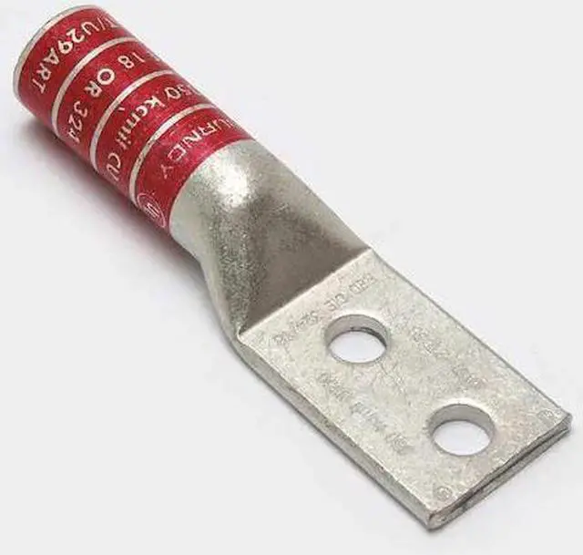 Compression Lug, Barrel Size Long, Color Code Red, Die Code 18, 324, Tongue Angle Straight, Tongue Width 1.29 in, For Conductor Material Copper, For Stud Size 3/8 in, For Stranded Copper Wire Size - Minimum 350 kcmil, For Stranded Copper Wire Size - Maximum 350 kcmil, Inspection Hole No, Hole Center to Center 1 in, Material Copper, Maximum Temperature 194 Degrees F, Maximum Voltage 35 kV, Termination Style Crimp, Standards CSA Certified, UL 486A-486B, UL Listed, Number of Holes 2.