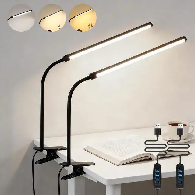 Multiple Lighting Options: This clip desk lamp features 3 color temperatures (3000K warm light, 4000K natural light, 6000K white light) and 10 levels of brightness adjustment. It can provide a bright white light for home office work, or a natural and soft warm light, effectively restoring the true colors of objects and reducing visual fatigue. It is suitable for various scenarios such as reading, working and studying