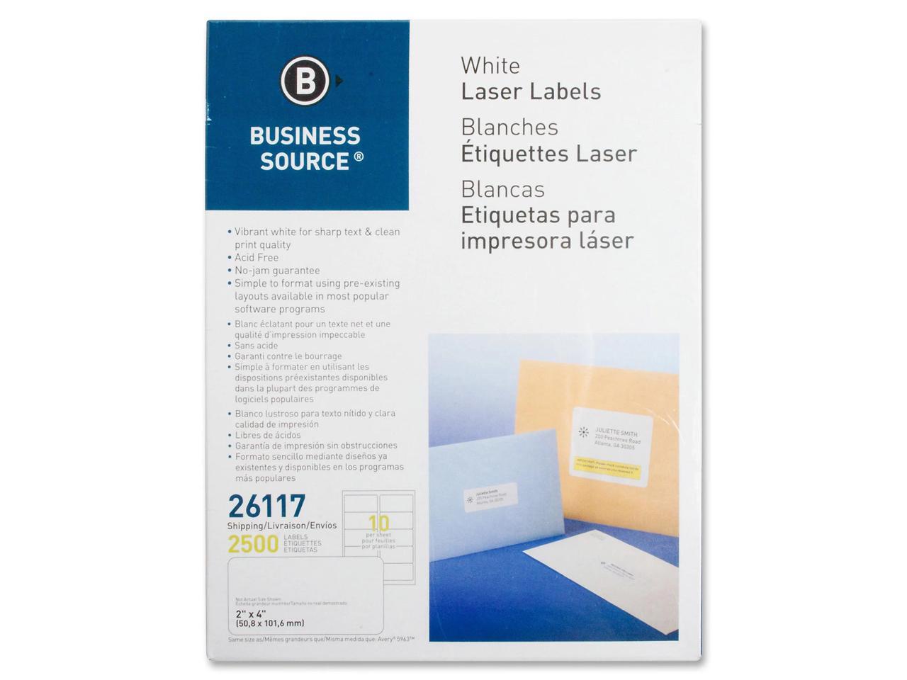 Business Source Mailing Labels Shipping Laser 2"x4" 2500/PK White 26117