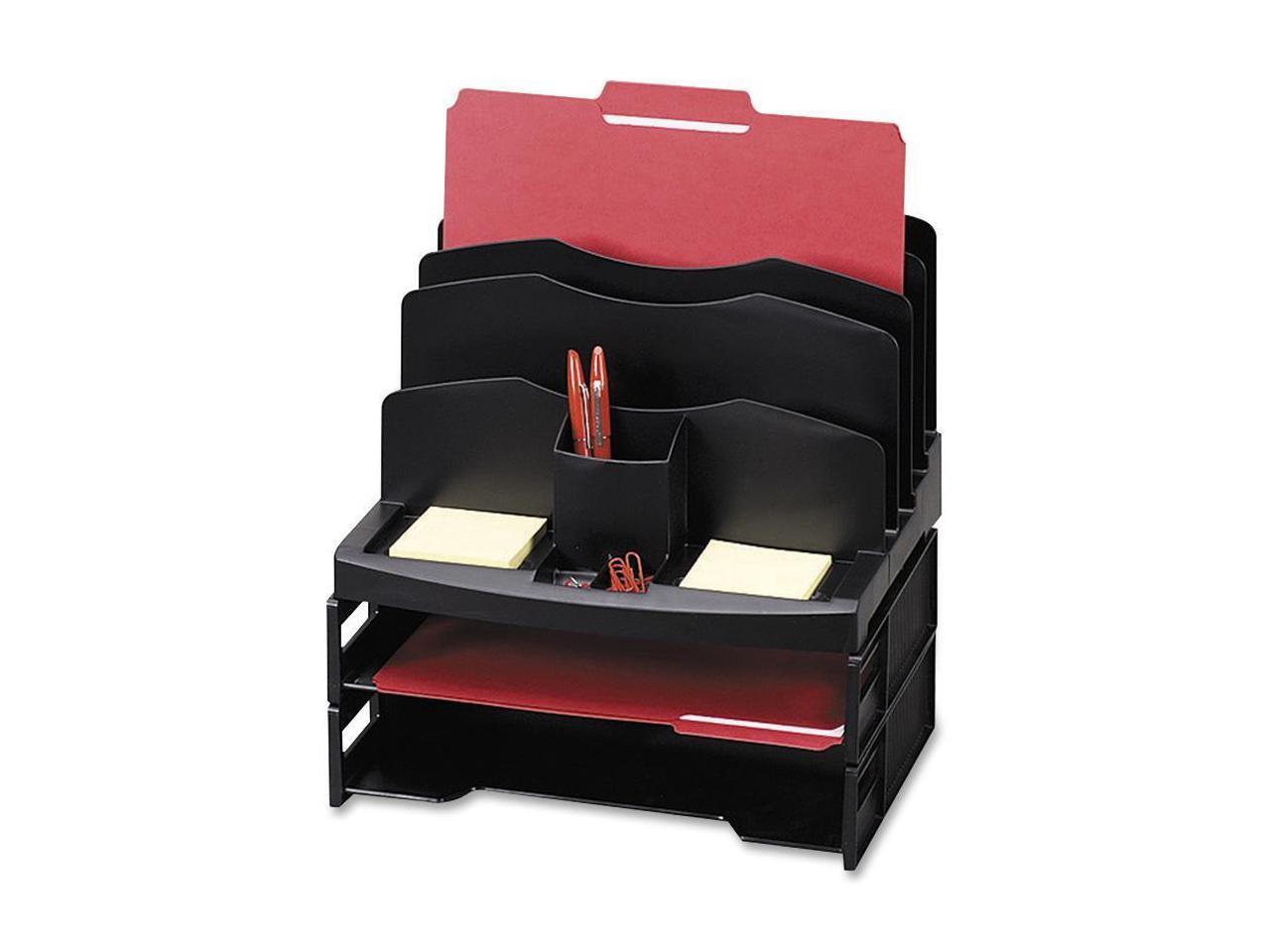Business Source Organizer w/2 Letter Trays 9 Comp 13-1/8"x9-7/8"x14" BK 26372