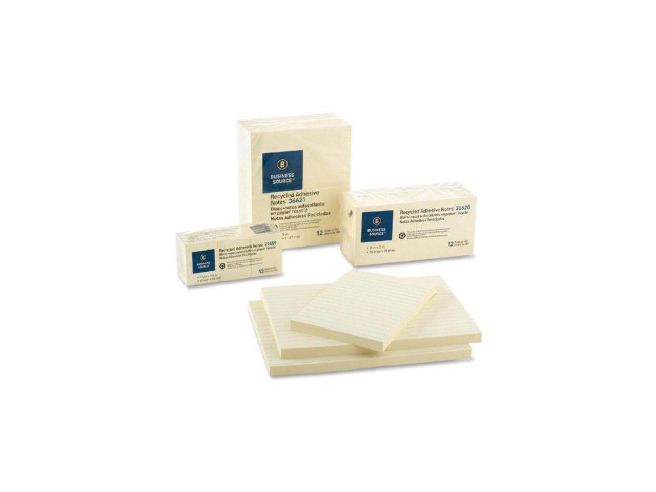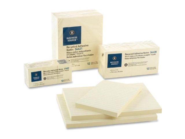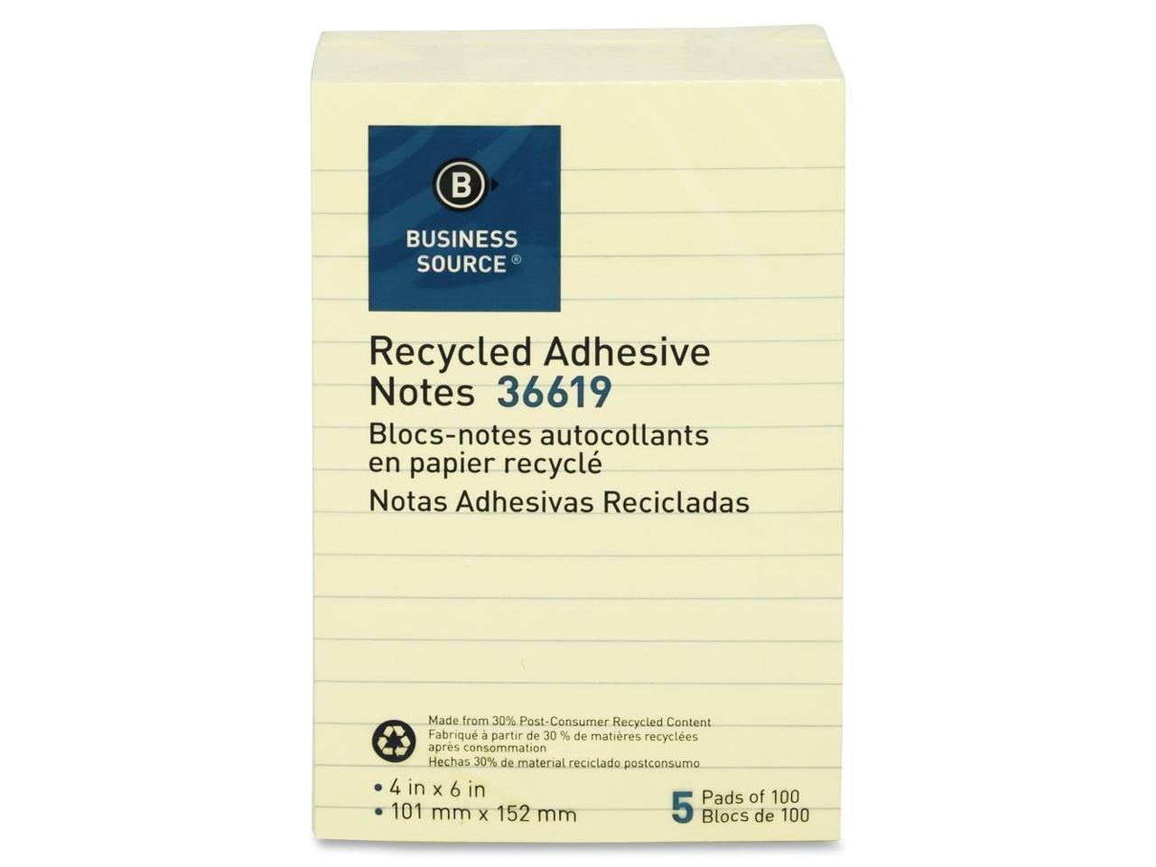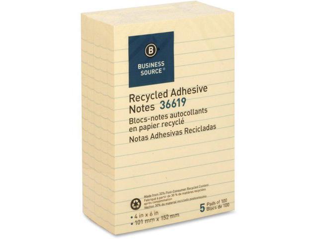 Business Source Recycled Adhesive Note Pads Lined 4"x6" 5/PK Yellow 36619