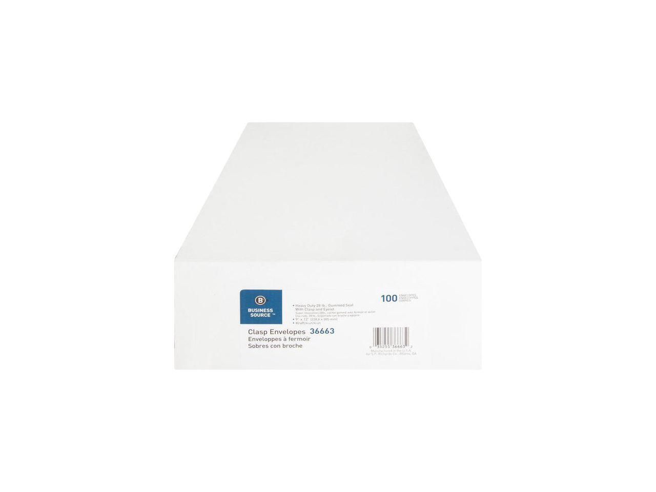 Business Source Clasp Envelopes 28 lb. 9"x12" 100/BX Brown Kraft 36663