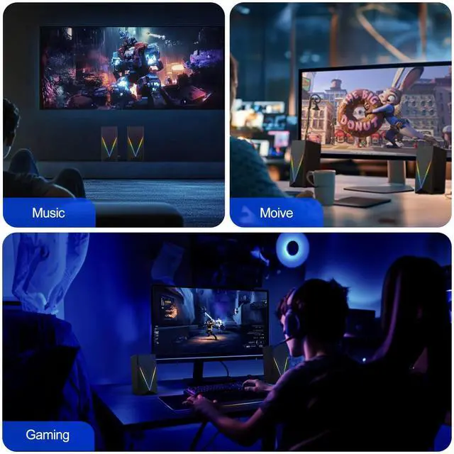 - [Widely compatibility]Our computer speaker come with a USB to USB C adapter, which can match more computer without a usb port. This gaming speakers come equipped with 3.5mm audio and match computers, desktops, PCs, laptops iMac with a USB C to USB adapter. Suitable for Windows (Vista / 7 / 8 / 10), Mac OS, Chrome OS, Linux, UNIX, and more.