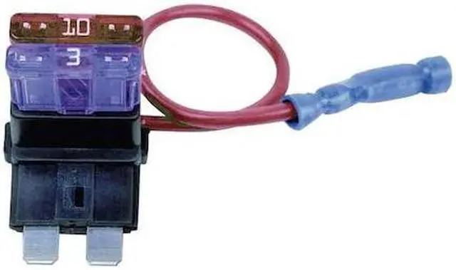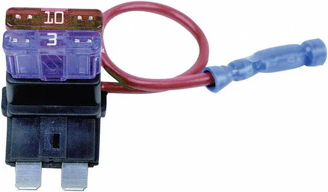 In-Line Fuse Holder, Fits Fuse Type Automotive, Fuse UL Class Not Class Rated, 5 to 10 A, Number of Poles 2, 12V DC, For Fuse Size 3/4 in L x 3/4 in W x 13/64 in D, Compatible Fuse Series 257, AF, ATC, Series Mini Dual Fuse Tap, Non-Indicating, Non-Rejection, Fuse Block Design Open, Wire Size 14 AWG, Wire Length 2 in, Mounting Style Inline, Body Material Plastic, Connector Type Wire Leads with Crimp, Body Height 0.72 in, Body Width 0.2 in, Body Length 0.77 in.