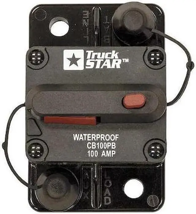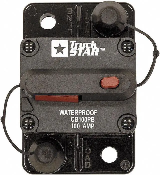 Automotive Circuit Breaker, Mount Type Bolt On, Mount Style Surface, Current Rating 100 A, Voltage Rating 42V DC, Interrupt Rating 100 A at 42V DC, Terminal Connection Stud, Actuator Push-to-Trip, Circuit Breaker Type Hi-Amp Circuit Breaker, Compatible Product Type Auxiliary and Accessory Circuits, Housing Material Plastic, Overall Depth 2 7/8 in, Overall Width 1 7/8 in, Reset Type Manual, Series CB. This item has been restricted from sale in the following state (s): []