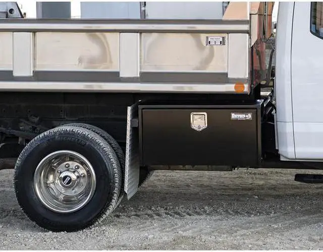 Underbody Truck Box, Black, Single, Overall Width 30 in, Overall Depth 18 in, Overall Height 18 in, Storage Capacity 5.3 cu ft, 14 Gauge, Mounting Style Bolt-On, Locking System Keyed, Latch Mechanism Paddle Handle, Includes Stainless Steel Locking Rotary Paddle Latch, T-Handle Compression Latch On Aluminum Door, Aircraft Cable Door Retainers, Replaceable Doors, Body Material Steel, Cover Material Steel, Lid Type Non-Adjustable. This item has been restricted from sale in the following state (s): []