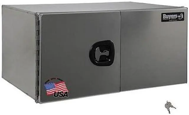California Proposition 65: This product contains a chemical known to the State of California to cause birth defects or other reproductive harm. Truck Box, Gloss Black/Silver, Double Barn Doors, Overall Width 36 in, Overall Depth 18 in, Overall Height 18 in, Storage Capacity 6.7 cu ft, 14 ga Gauge, Latch Mechanism D-Handle, Body Material Stainless Steel, Cover Material Stainless Steel, Lid Type Adjustable, Features Aircraft-Grade Cables and a Replaceable Gasket Sealing System, Die-Cast Compression Latch, Lid Hinge Yes, Weather Resistant Yes