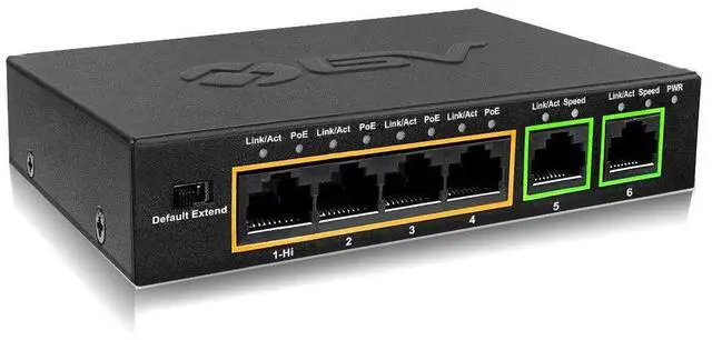 - 4 PoE Ports + 2 Uplink Ports