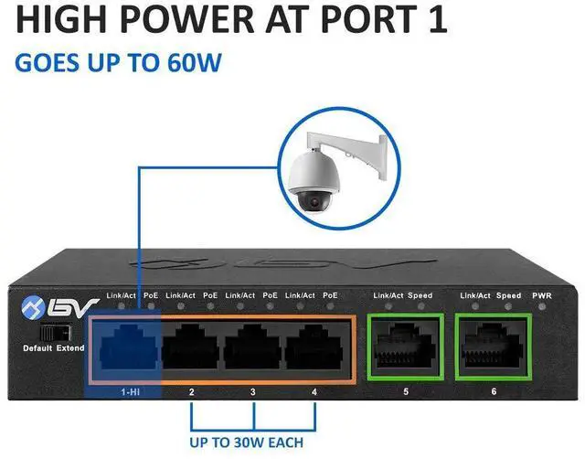 High Power PoE Port on Port 1 - Up to 60W on a Single Port
