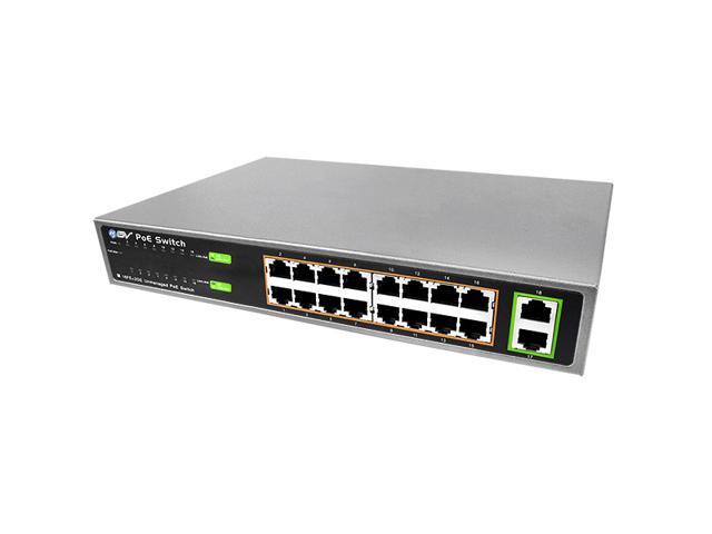 BV-Tech 16 Port PoE+ Unmanaged Switch + 2 Gigabit Ethernet Uplink – 130W – 802.3at – POE-SW1602-E