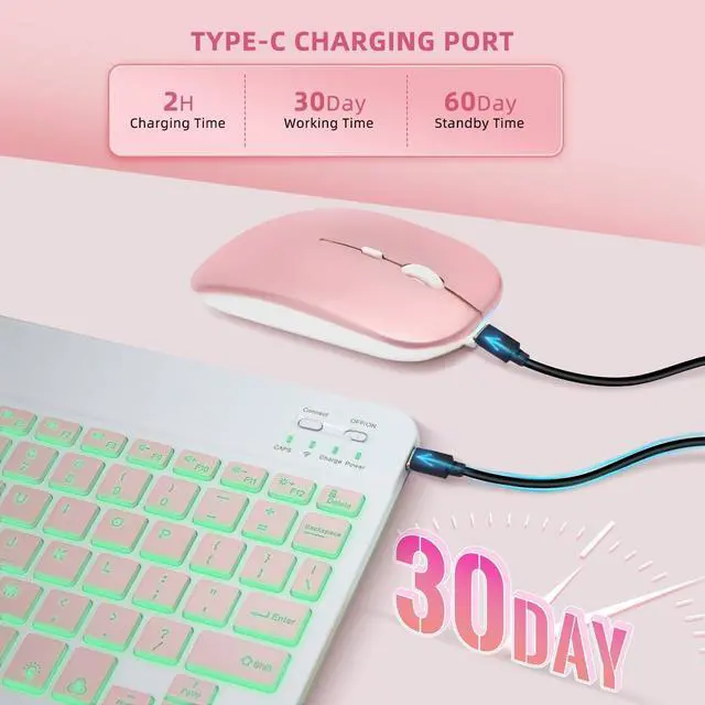 Keyboard Case for Samsung Galaxy Tab A11+ Plus 2025 / A9+ Plus 2023 11 inch - 7 Colors Backlit Keyboard Cover and Mouse (Pink)