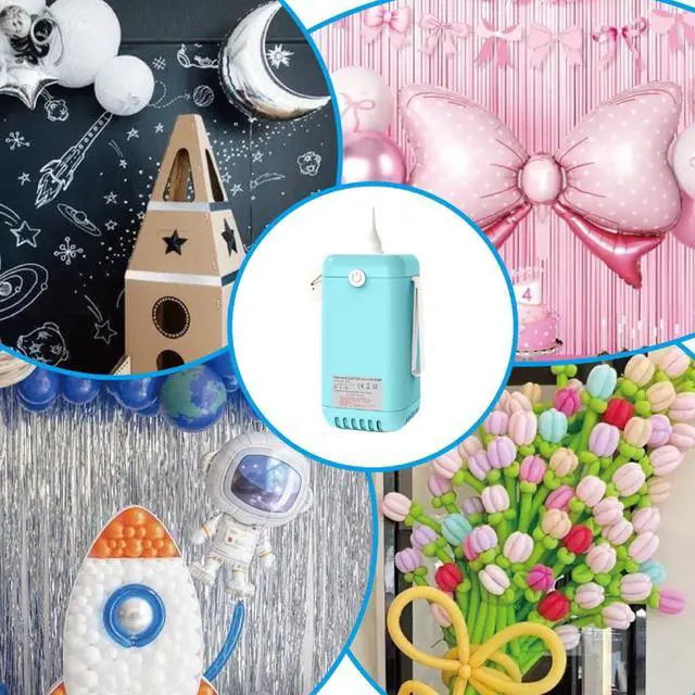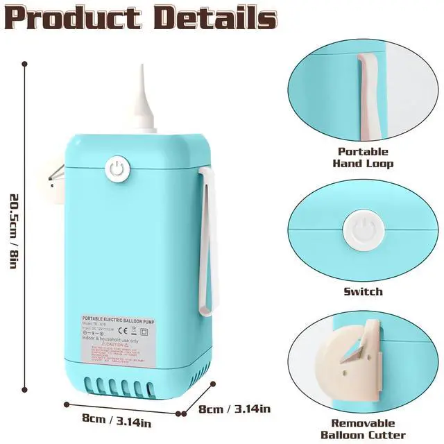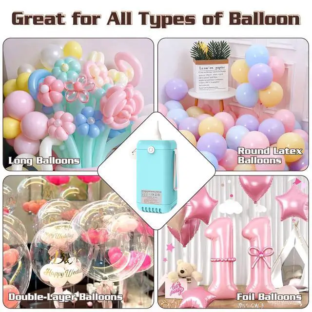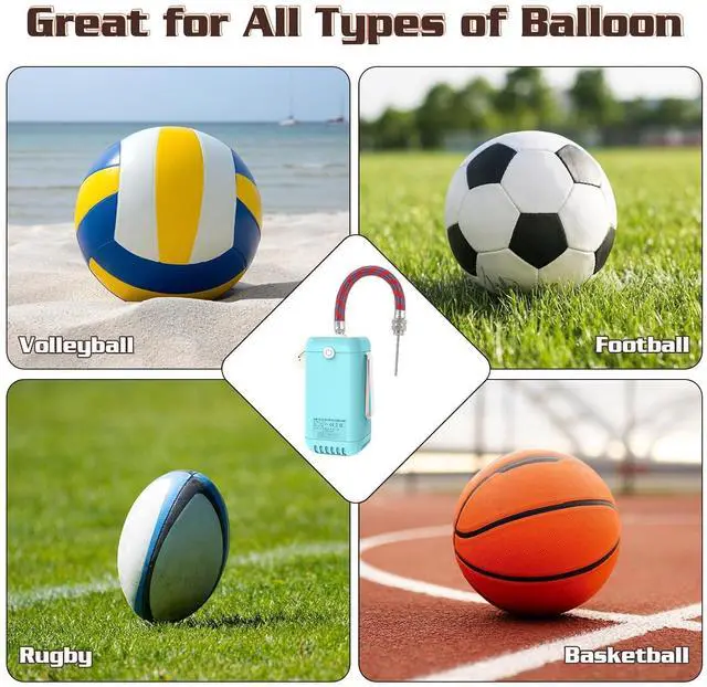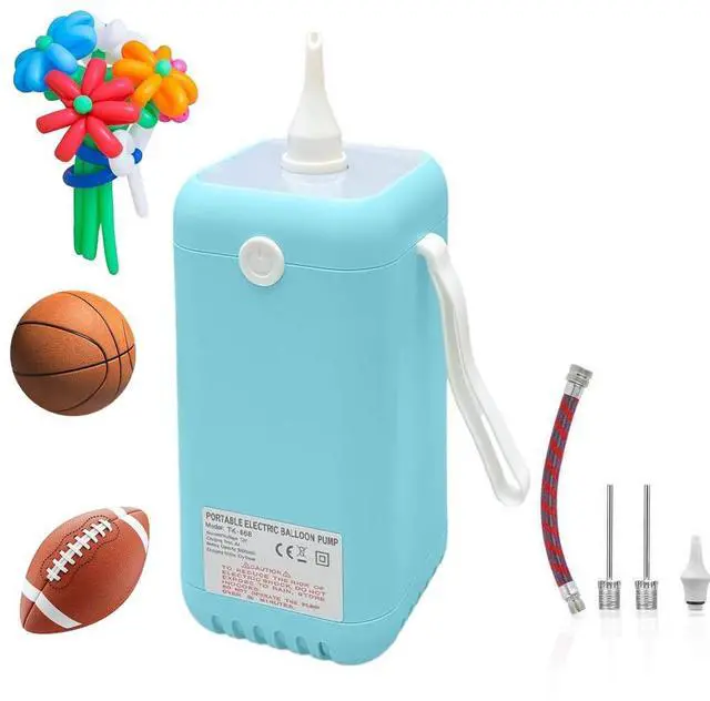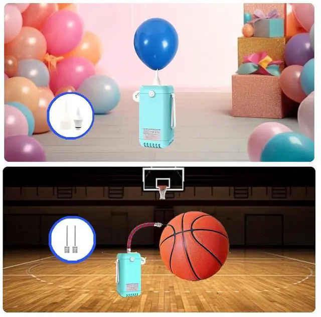 Electric Balloon Pump,2-in-1 Balloon Inflator Machine for Balloons at Home,Balloon Air Pump Single Nozzle Inflator Balloons Filling for Party Decoration This electric air pump can not only inflate balls. When you replace the ball needle mouthpiece, you can use it to inflate basketballs, footballs, rugby and other sports balls,The electric balloon pump works perfectly with latex balloons, bobo balloons, and even mini or foil balloons using the included small nozzles. Plus, the balloon arch kit (2 Ball air needle, 1xBalloon needle, 1xGas needle catheter) makes inflating, tying, and decorating effortless!
