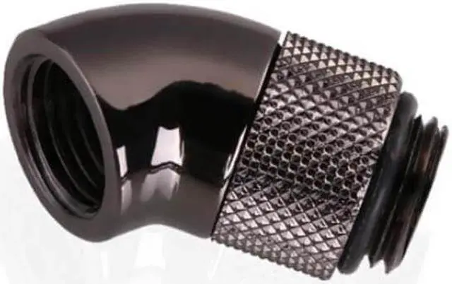 The Bykski Male to Female G 1/4in. 45 Degree Rotary Elbow Fitting is an easy solution when trying to change direction quickly with your loop. This adapter is great for redirecting tubing runs away from components at unconventional angles. The rotary function allows you to aim the connection in any desired direction 45 degrees from the mount.