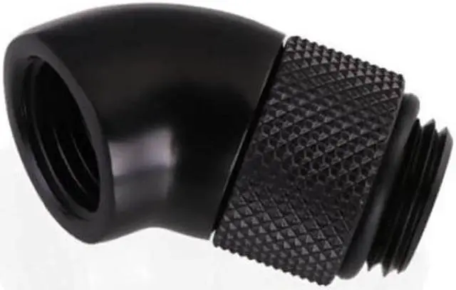 The Bykski Male to Female G 1/4in. 45 Degree Rotary Elbow Fitting is an easy solution when trying to change direction quickly with your loop. This adapter is great for redirecting tubing runs away from components at unconventional angles. The rotary function allows you to aim the connection in any desired direction 45 degrees from the mount.