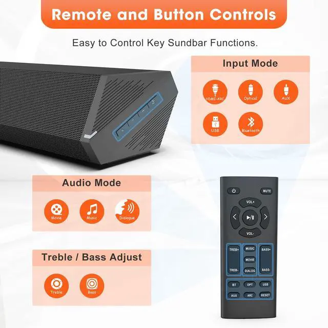 * Hdmi-Arc Mode can let you use your TV remote to control volume of both soundbar and TV.