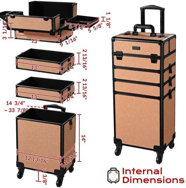 - 4-in-1 Customizable Structure - 4 sections allow free combination, can be combined into 1 large train case or used as a 2 to 4-layered trolley; The 2nd and 3rd sections for providing 2-layer space to store lipsticks, mascaras, palettes, etc.