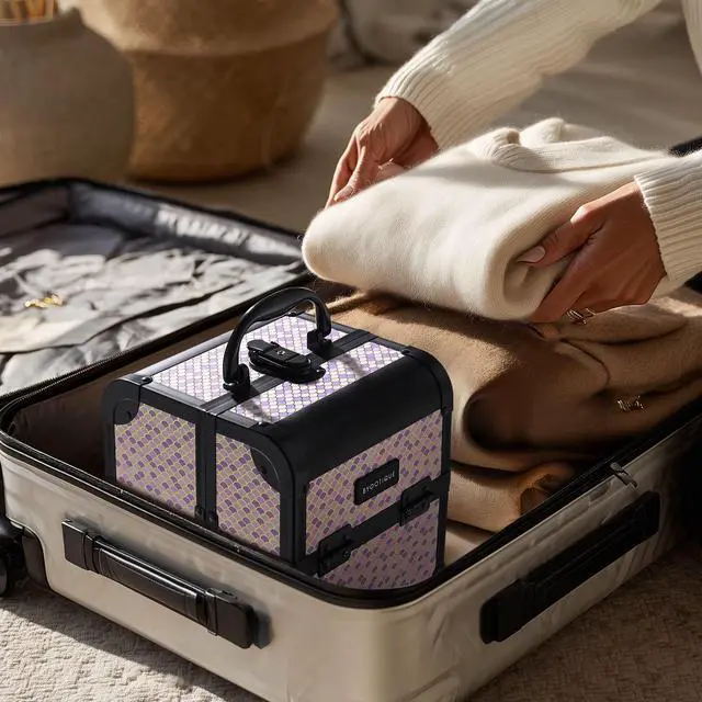 - Lockable Makeup Box Organizer - This securely latched makeup nail travel case safeguards your valuable tools and cosmetics, providing peace of mind wherever you go. Its durable construction ensures years of reliable use, standing up to the rigors of busy gigs and travel