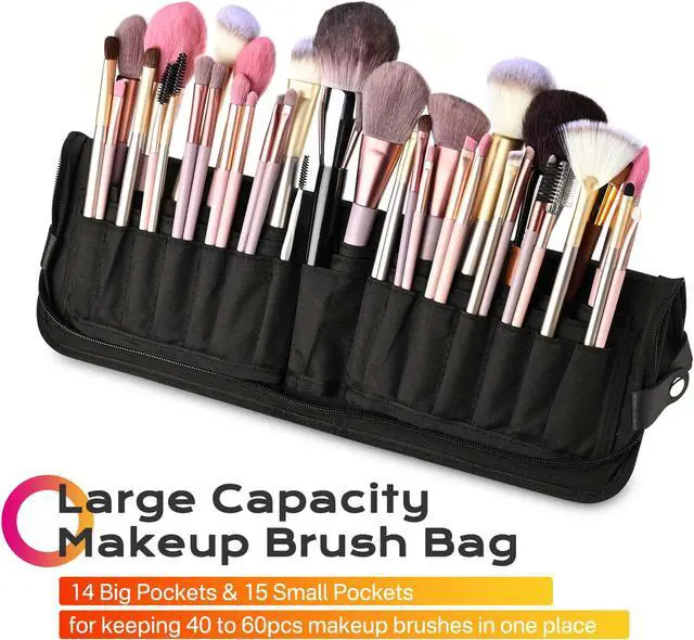 - Compact Size with Multi-Pockets - Byootique Makeup Brush Bag comes with 14 large holes and 15 small holes, great for storing 40 to 60 makeup brushes, providing a practical solution for makeup artists and makeup lovers to carry their makeup brushes in an organized manner