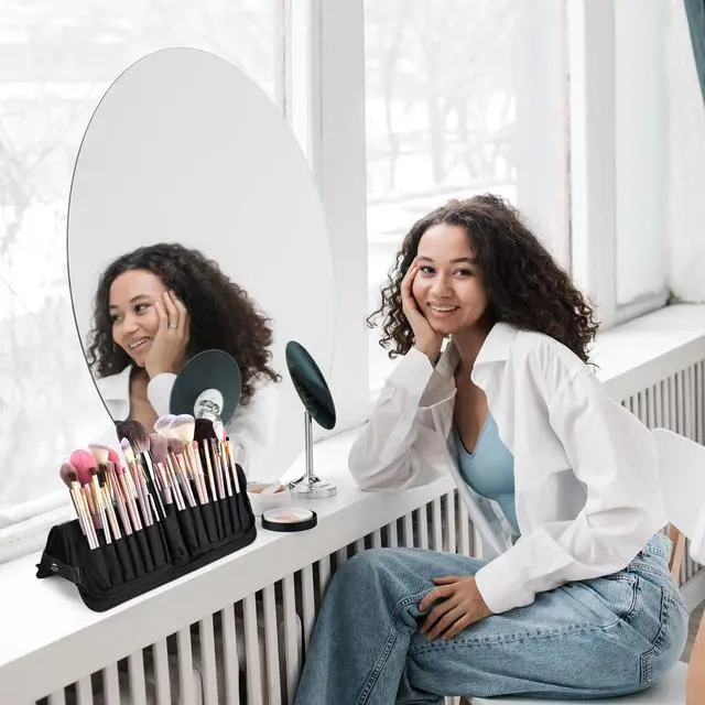 - Upright & Tiled Positioning - Features one-piece design with a zipper, allowing for full unfolding to display all your makeup brushes, or the buckling of buttons on both sides in order to turn it into an upright brush holder, make it easy for you to access your brushes at a glance