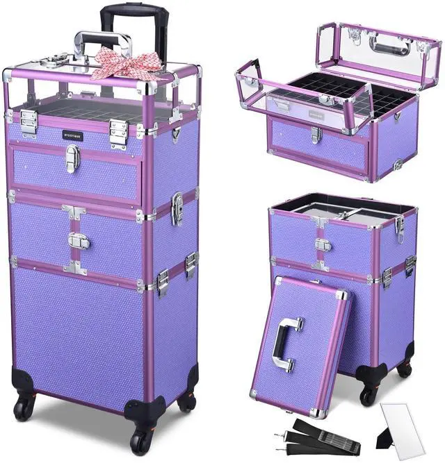 - Diamond Shiny Purple - Byootique 2in1 Professional Makeup Case in purple embellished with plenty of shiny diamonds to sparkle under light, fashionable vanity case to greatly complement your outfit & make you stand out; Great for mobile manicurist, makeup artist, beautician & professional cosmetologist