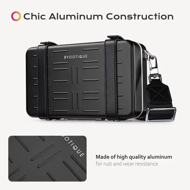 - Chic & Cool - Byootique Aluminum Handbag with shoulder strap, featuring a chic aluminum construction with classic black color which will never go out of trend, is a must have item to show your fashion sense as well as a perfect companion for your trips