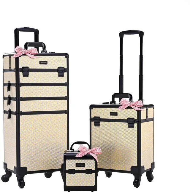 - 3-Piece Makeup Case Set - Byootique Kit includes 1 pcs 4-in-1 rolling makeup case, 1 pcs middle-sized trolley, and 1 pcs handheld train case