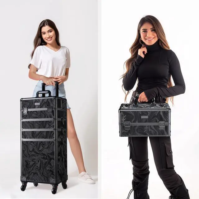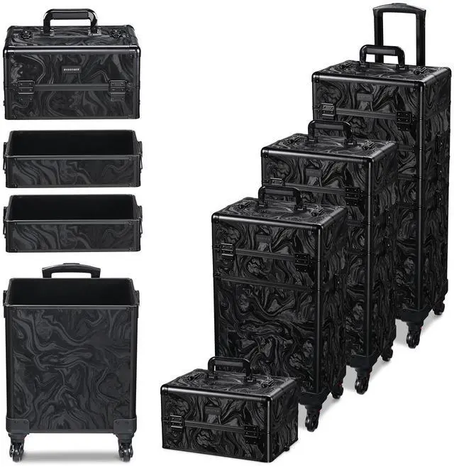 - 4-in-1 Customizable Structure - 4-in-1 Makeup Train Case allows free combination of sections, can be combined into 1 large train case or used as a 2 to 4-layered trolley; 2nd & 3rd section for providing 2-layer space to store lipsticks, mascaras, palettes, etc., and the 4th section is a large space for large tools, hair dryers or irons