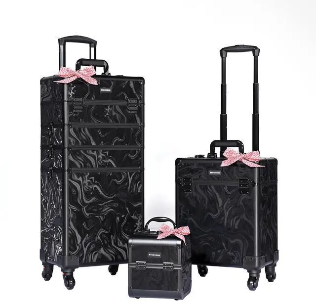 - 3-Piece Makeup Case Set - Byootique Kit includes 1 pcs 4-in-1 rolling makeup case, 1 pcs middle-sized trolley, and 1 pcs handheld train case, featuring a liquid marbling texture, inspired by flowing waves of Coyote Buttes