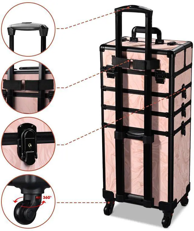 - 4-in-1 Customizable Structure - 4-in-1 Makeup Train Case allows free combination of sections, can be combined into 1 large train case or used as a 2 to 4-layered trolley; 2nd & 3rd section for providing 2-layer space to store lipsticks, mascaras, palettes, etc., and the 4th section is a large space for large tools, hair dryers or irons