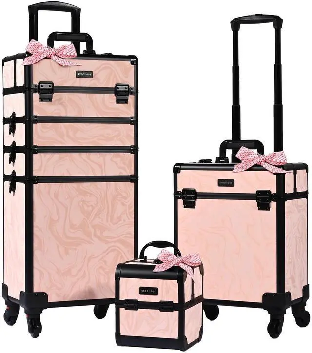 - 3-Piece Makeup Case Set - Byootique Kit includes 1 pcs 4-in-1 rolling makeup case, 1 pcs middle-sized trolley, and 1 pcs handheld train case, featuring a liquid marbling texture, inspired by flowing waves of Coyote Buttes