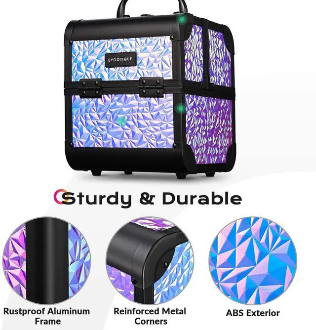 - Cube Case - Open the case to reveal a flip-up mirror and 2 extendable trays for organizing your makeup essentials such as lipsticks, compressed powders, and nail polishes, along with a bottom space for storing small bottles