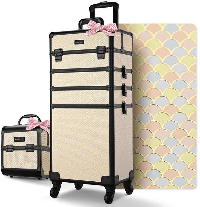 BYOOTIQUE Makeup Train Case Trolley w/ Cube Case Cosmetic Organizer Art Deco Pastel